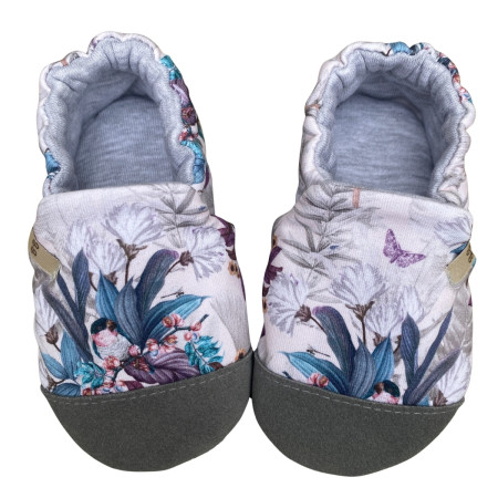 Niezwykle lekkie, oddychające i super wygodne kapcie w czarnym kolorze wykończone złotymi noskami z serii velvetowych paputków HELLO BUNNY z uroczymi uszkami i filcowym ogonkiem. Idealne dla dzieci raczkujących, stawiających pierwsze kroki jak i dla starszych. Kapcie marki Baby Bisous to najwygodniejsze obuwie do przedszkola, żłobka i po domu. Łatwo się je zakłada i zdejmuje dzięki temu, że nie posiadają skomplikowanego zapięcia. Na stopach trzymają się dzięki gumce wszytej w tylnej części papci. Posiadają miękką, antypoślizgową podeszwę, która naturalnie pracuje razem ze stopą. Dbając o każdy szczegół, wykorzystujemy najlepsze jakościowo materiały, a wszystkie szwy skrzętnie ukrywamy. Wierzchnia część papci wykonana jest z mocnej, odpornej na przetarcia tkaniny. Palce są dodatkowo wzmocnione. Wewnętrzna część to miękka oddychająca bawełna. Rzeczywisty kolor kapci może różnić się ze względu na indywidualne ustawienia monitora. Rozmieszczenie wzoru może różnić się od przedstawionego na zdjęciu. Produkt w całości szyty ręcznie w Polsce.