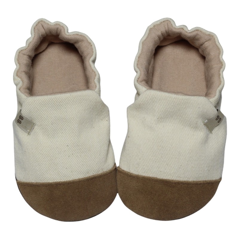 Niezwykle lekkie, oddychające i super wygodne kapcie w naturalnym kolorze wykończone karmelowymi noskami. Idealne dla dzieci raczkujących, stawiających pierwsze kroki jak i dla starszych. Kapcie marki Baby Bisous to najwygodniejsze obuwie do przedszkola, żłobka i po domu. Łatwo się je zakłada i zdejmuje dzięki temu, że nie posiadają skomplikowanego zapięcia. Na stopach trzymają się dzięki gumce wszytej w tylnej części papci. Posiadają miękką, antypoślizgową podeszwę, która naturalnie pracuje razem ze stopą. Dbając o każdy szczegół, wykorzystujemy najlepsze jakościowo materiały, a wszystkie szwy skrzętnie ukrywamy. Wierzchnia część papci wykonana jest z mocnej, odpornej na przetarcia tkaniny. Palce są dodatkowo wzmocnione. Wewnętrzna część to miękka oddychająca bawełna. Rzeczywisty kolor kapci może różnić się ze względu na indywidualne ustawienia monitora. Rozmieszczenie wzoru może różnić się od przedstawionego na zdjęciu. Produkt w całości szyty ręcznie w Polsce.