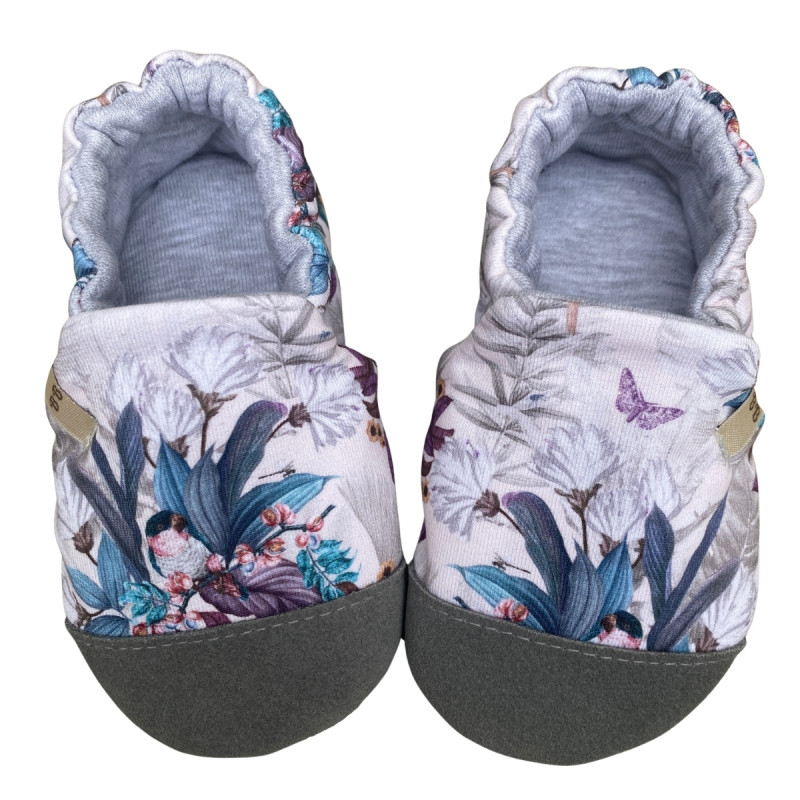 Niezwykle lekkie, oddychające i super wygodne kapcie w papugi (dresówka) wykończone szarymi noskami (skóra naturalna). Idealne dla dzieci raczkujących, stawiających pierwsze kroki jak i dla starszych. Kapcie marki Baby Bisous to najwygodniejsze obuwie do przedszkola, żłobka i po domu. Łatwo się je zakłada i zdejmuje dzięki temu, że nie posiadają skomplikowanego zapięcia. Na stopach trzymają się dzięki gumce wszytej w tylnej części papci. Posiadają miękką, antypoślizgową podeszwę, która naturalnie pracuje razem ze stopą. Dbając o każdy szczegół, wykorzystujemy najlepsze jakościowo materiały, a wszystkie szwy skrzętnie ukrywamy. Wierzchnia część papci wykonana jest z mocnej, odpornej na przetarcia tkaniny. Palce są dodatkowo wzmocnione. Wewnętrzna część to miękka oddychająca bawełna. Rzeczywisty kolor kapci może różnić się ze względu na indywidualne ustawienia monitora. Rozmieszczenie wzoru może różnić się od przedstawionego na zdjęciu. Produkt w całości szyty ręcznie w Polsce.